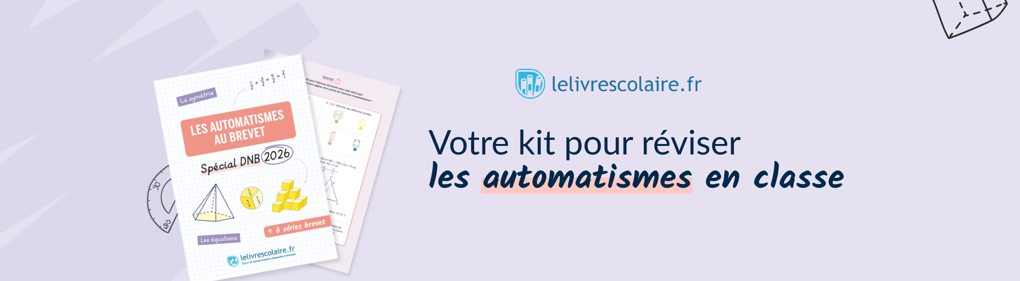 Pour vous accompagner dans cette année de transition, où l'usage de la calculatrice est interdit durant cette partie, nos éditeurs ont analysé la liste indicative d’automatismes publiée par le ministère. Nous avons sélectionné pour vous les exercices les plus pertinents afin d'installer des réflexes durables chez vos élèves de 3e.